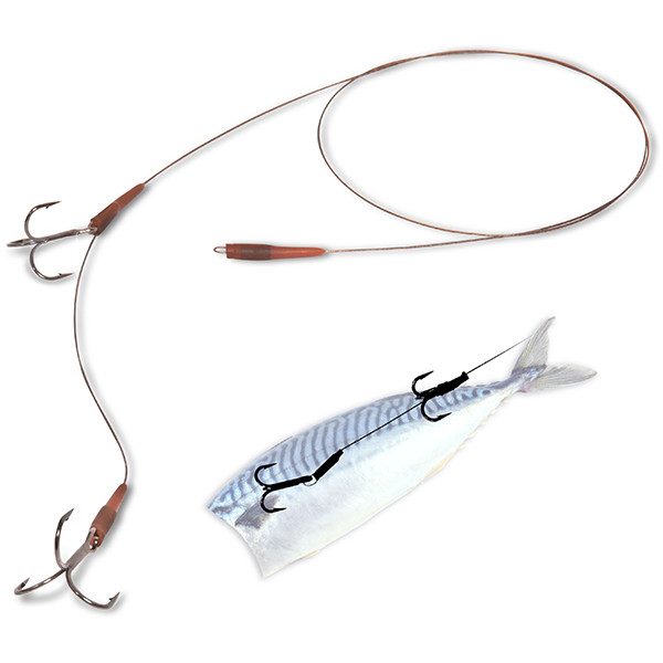 Färdig rigg för bottenmete med betesfisk. Utrustade med högkvalitativa kolstålskrokar bundna på 30lb (14 kg) camo-ståltafs. Högkvalitativ produktion är av yttersta prioritet när varje klämhylsanslutning görs separat för hand och inspekteras noggrant.