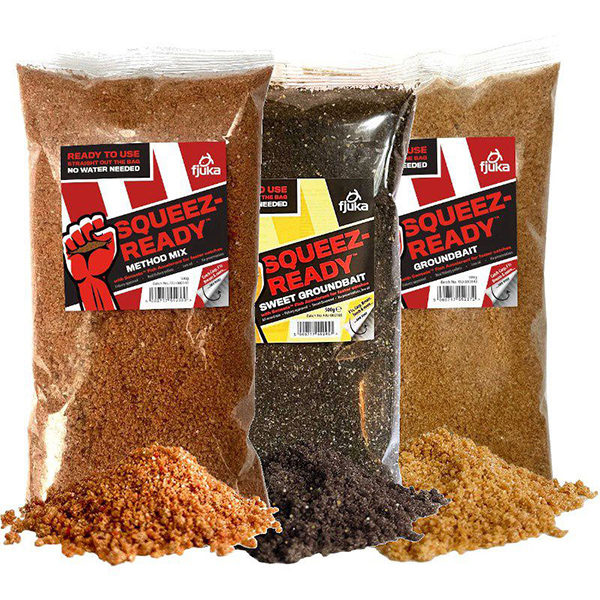 Fjuka Squeeze Ready Groundbait en serie av högkvalitativa förberedda groundbait redo att fiska direkt ur påsen. Utvecklad i samarbete med matchfiskelegenden Tommy Pickering. Detta är ett snabbt och enkelt sätt att få fiskarna att nappa att ta bort gissningarna av att få mixen helt rätt.