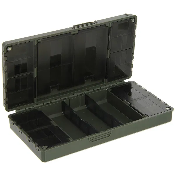 En praktiskt och kompakt tillbehörslåda som är utformad för att rymma olika rigg- & tackeltillbehör. Lådan stängs och hålls ihop av små kraftfulla magneter vilket gör åtkomst och förvaring snabb och säker. Ytterligare fördelar inkluderar en 20 cm's mätsticka på ovansidan, vilket är idealiskt för att underlätta vid tillverkning av riggar. Lådan har flera invändiga fack med lock vilket gör denna box idealisk för alla fiskare.