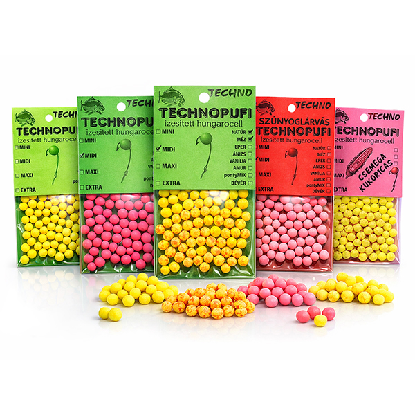 TECHNOPUFI COLOR är ett flytande plastbete som är mycket effektivt vid bottenmete efter exempelvis karp, braxen, ruda och annan vitfisk. De färgglada skumbollarna lyfter kroken från botten och ger en mer synlig och attraktiv presentation som ofta leder till fler napp.