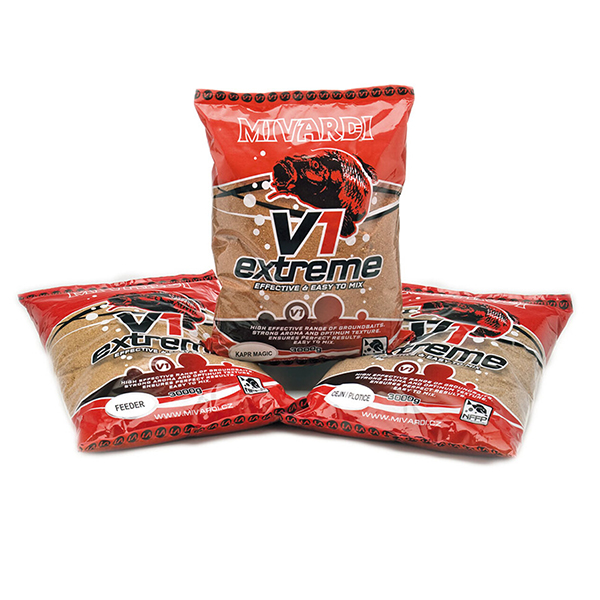 Ett texturerat groundbait som både lämpar sig för användning för utkastning av mäskbollar liksom för användning i en feeder. Dessa groundbaits består av olika sorters krossade bröd, kex, frön och andra ingredienser. Tack vare dessa ingredienser är V1-Extreme mer effektiva än andra vanligt använda groundbait i en jämförbar prisklass (som oftast baserats på "aromatiserade majsmjöl").