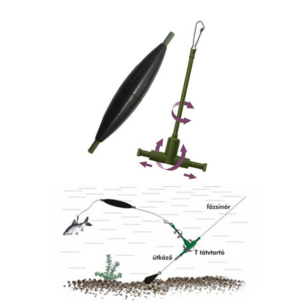 Ett fantastik tillbehör för att få betesfisken perfekt presenterad i vattnet. Med hjälp av de två delarna kan man enkelt göra de sammansättningar som visas i figuren. Flytkroppen lyfter kroken från huvudlinan och den roterande spacern får betesfisken att röra sig fritt så att risken för intrassling reduceras till ett minimum.