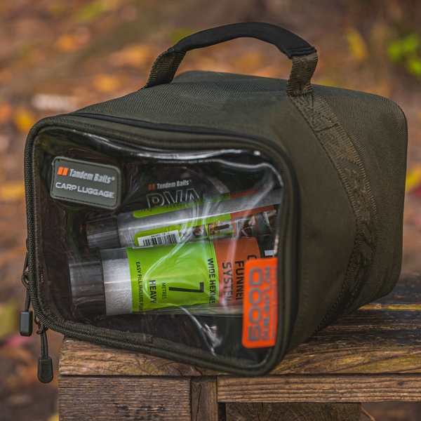 En praktisk väska med genomskinligt lock, idealisk för olika karpvprylar. Tillverkad av nästan oförstörbart Duranylon 1680D-material. Väskan har ett genomskinligt lock med 2-vägs dragkedjor som gör att du snabbt kan kontrollera innehållet. Ett starkt och praktiskt handtag möjliggör en säker och bekväm transport. Kompakta mått gör det möjligt att ta med den överallt, både för ett snabbt pass eller för ett flera dagars långt fiskepass.