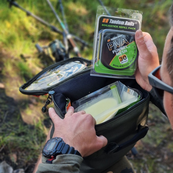 Väskan är gjord av mörkt olivfärgat material med Tandem Baits camomönster. Perfekt för alla karpfiskare som gillar dämpade färger som smälter in i omgivningen.