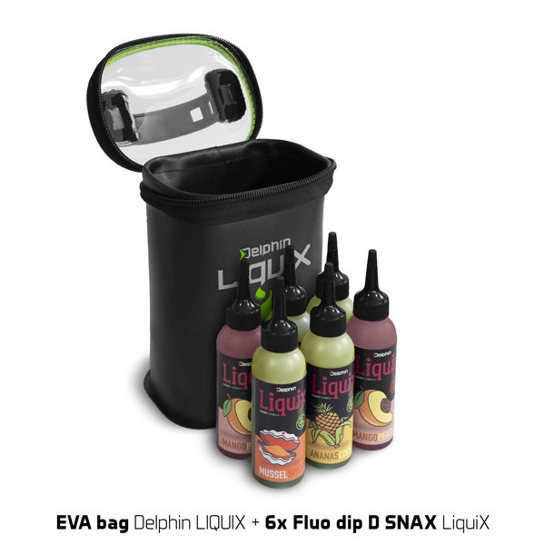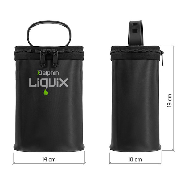 Väskans storlek är designad för att rymma 6 flaskor av Delphin's fluo dip D SNAX Liquix eller andra flytande boosters i liknande förpackningar. På så sätt kan du placera flera smaker och färger inuti. Det finns ett praktiskt handtag på locket för enklare hantering och transport.