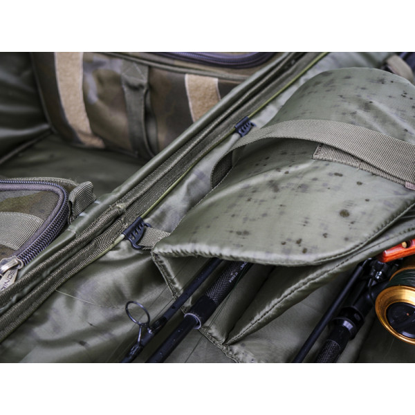 Sonik Xtractor 3-Rod T-50 Transport System är det ultimata 3-spö transportsystemet för 3st Sonik Xtractor 9-fots eller 10-fots karpspön med rullar. Den har gott om plats i de tre medföljande avtagbara tillbehörsväskorna för dina larm, tackeltillbehör, beten, personliga tillbehör etc.