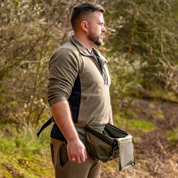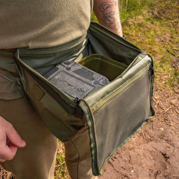 Korum Progress HD Bait Pouch ger dig handsfree förvaring av bete, redskap och verktyg när du rör dig runt fiskevattnet. Försedd med en unik inbyggd ram för att behålla sin optimala form utan att kollapsa. Designad för komfort och funktionalitet och inkluderar en smidig hållare för slangbellan. Locket är stängbart med dragkedja och fälls framåt för att inte vara i vägen när man skjuter ut beten. Locket har även en nätficka inuti för förvaring av diverse verktyg och tackeltillbehör. Väskan är utformad för att hålla Korums betesbaljor. När den inte används packas den ner till platt för enkel förvaring.