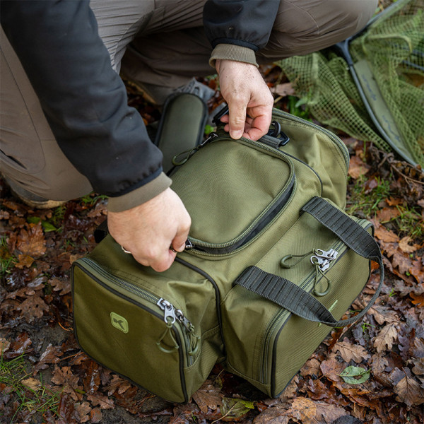 Korum Progress Compact Carryall 25L är en lättviktig variant av en traditionell fiskeväska. Med ett Blox-kompatibelt inre fack och fickor är den perfekt för korta sessioner. Den levereras komplett med justerbar vadderad axelrem.