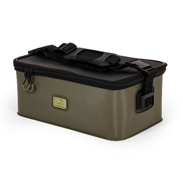 Korum EVA Tackle and Bait Carryall 15L är en praktisk och slitstark väska för både beten och tillbehör. Den levereras med två interna brickor, varav en har ett 3 mm nät för att sila partiklar och blanda groundbaits. Under användning kan brickorna enkelt fästas på utsidan av väskan och skapa en rymlig arbetsyta. Under brickorna finns gott om plats för betesburkar och annan utrustning. Väskan har en bekväm, avtagbar axelrem och en superstark dragkedja för lång livslängd.