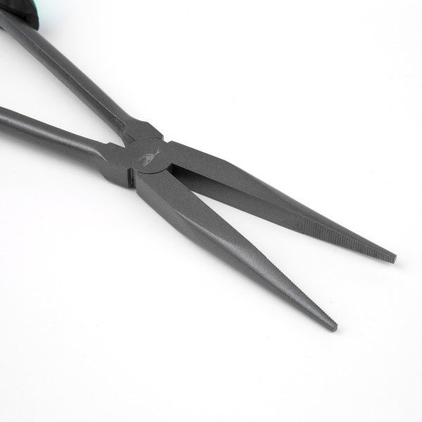 Dessa extra-långa tänger på 28 cm är byggda för kraft och precision, särskilt framtagna för att säkert hantera även de största rovfiskarna med skarpa tänder. Med ett mjukt, ergonomiskt grepp och en slät PTFE-beläggning ger de maximal komfort och kontroll när det behövs som mest.