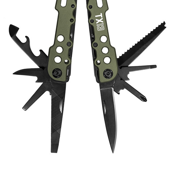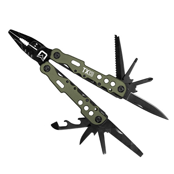 Tången är perfekt för sportfiskare, friluftsentusiaster och hantverkare. Multifunktionstång TaktyX 13 levereras med et fodral som kan fästas i bältet.